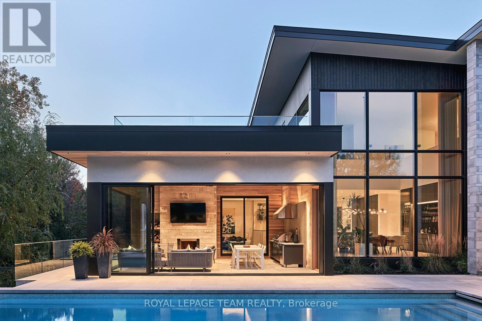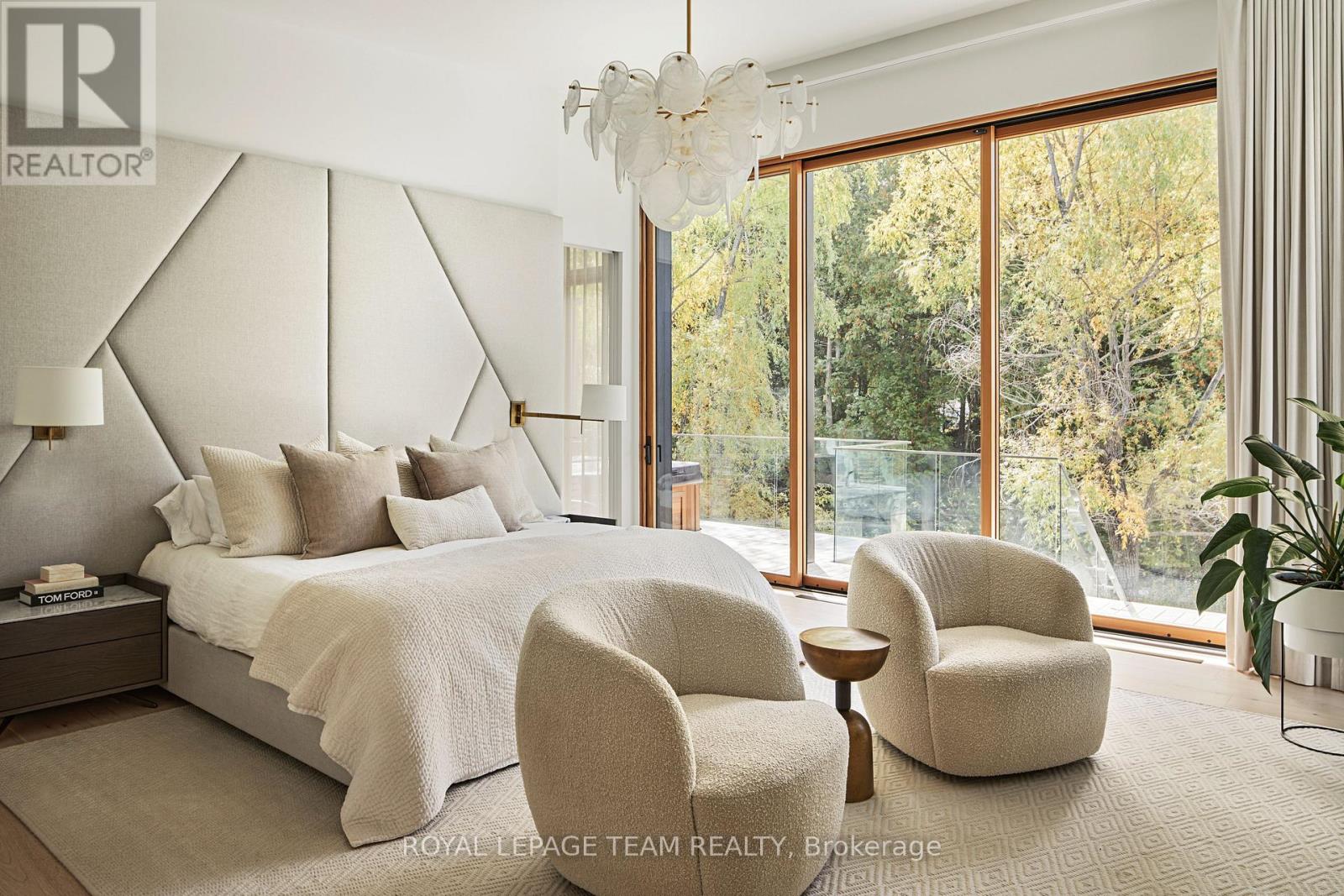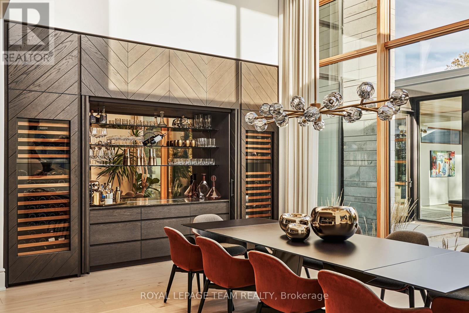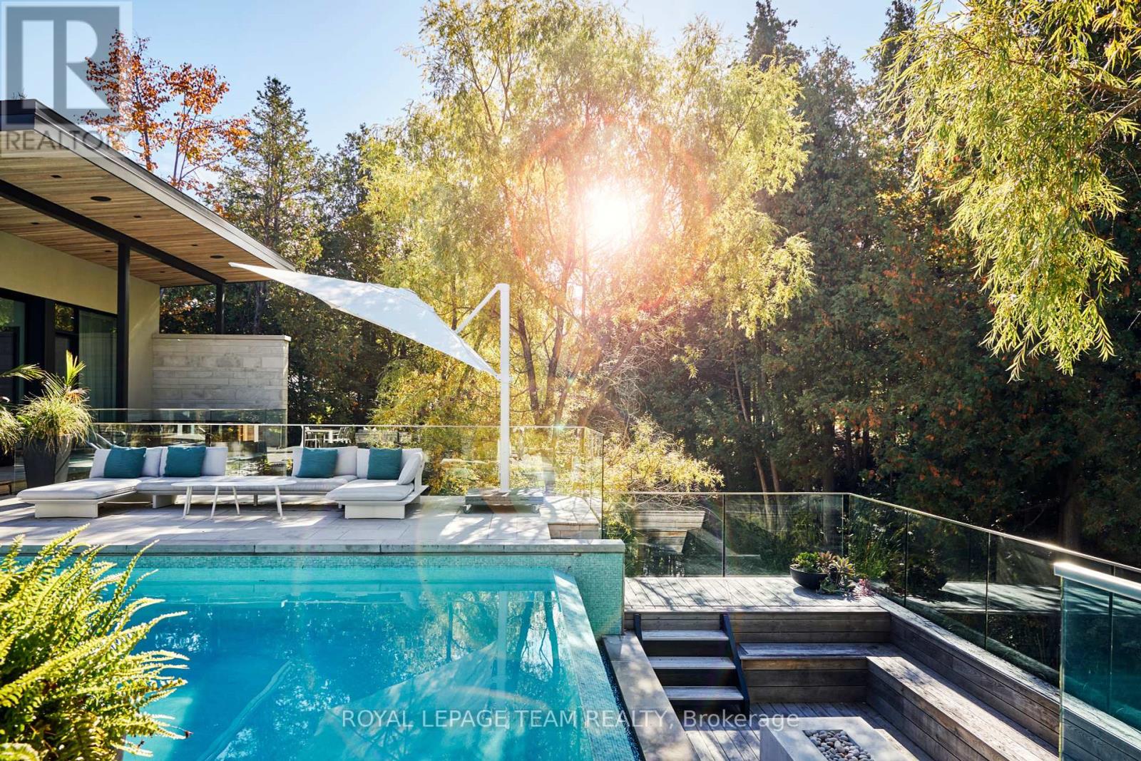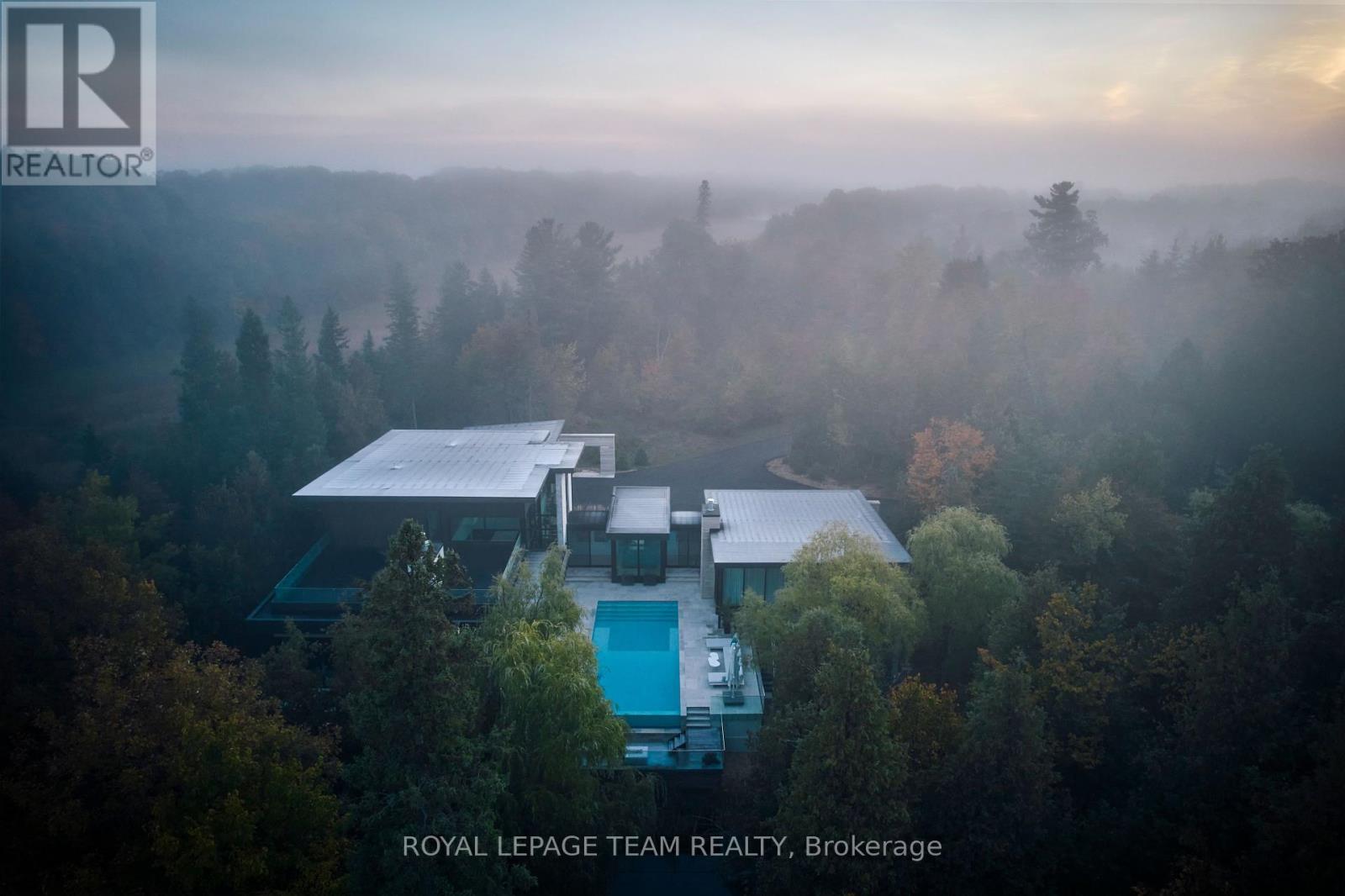 Discover a rare opportunity to own an architectural dream in the Kanata Rockeries. This ultra-private residence seamlessly blends elegance, innovative design, and the tranquility of nature in every space, offering a lifestyle of unparalleled luxury & a spa-like atmosphere right at home. Relax & unwind in the saltwater infnity pool overlooking the serene pond, soak in the hot tub, rejuvenate in the sauna & steam room, or cozy up by one of the 5 fre features. For ftness enthusiasts, the massive home gym is a haven, & nature lovers will appreciate the 6km nature hike accessible directly from your backyard. With over 9,000sf of meticulously curated living space, this home is designed for both intimate family living and grand-scale entertaining, indoors and out. The main foor is bathed in natural light, with panoramic views of the surrounding landscape. The primary retreat exudes elegance, wrapped in a warm, inviting ambiance & adorned with a lavish marble ensuite featuring heated foors, along with a dedicated makeup desk, a chic spacious walk-in closet, private laundry, & breathtaking foor-to-ceiling sliding glass wall to private deck & hot tub. The Chef's kitchen is a culinary masterpiece, featuring two 9ft islands & custom 15t banquet. Behind seamless custom cabinetry lies a hidden prep kitchen & pantry, featuring storage & secondary fridge & freezer. The dining room, complete with a bar & built-in wine fridges, fows effortlessly into the inviting living room. A heated 3-season room is designed for year-round enjoyment with sliding glass walls opening to the pool, a wood freplace & designer outdoor kitchen. The heated front walkway is a dream in the winter plus the 4 car heated garage offers direct access to the mudroom & separate entry to the basement-level sports room which is fully ventilated; perfect for active families. Nestled in the heart of the city, you can walk to shopping, dining, top-rated schools, rec facilities! (id:2469)