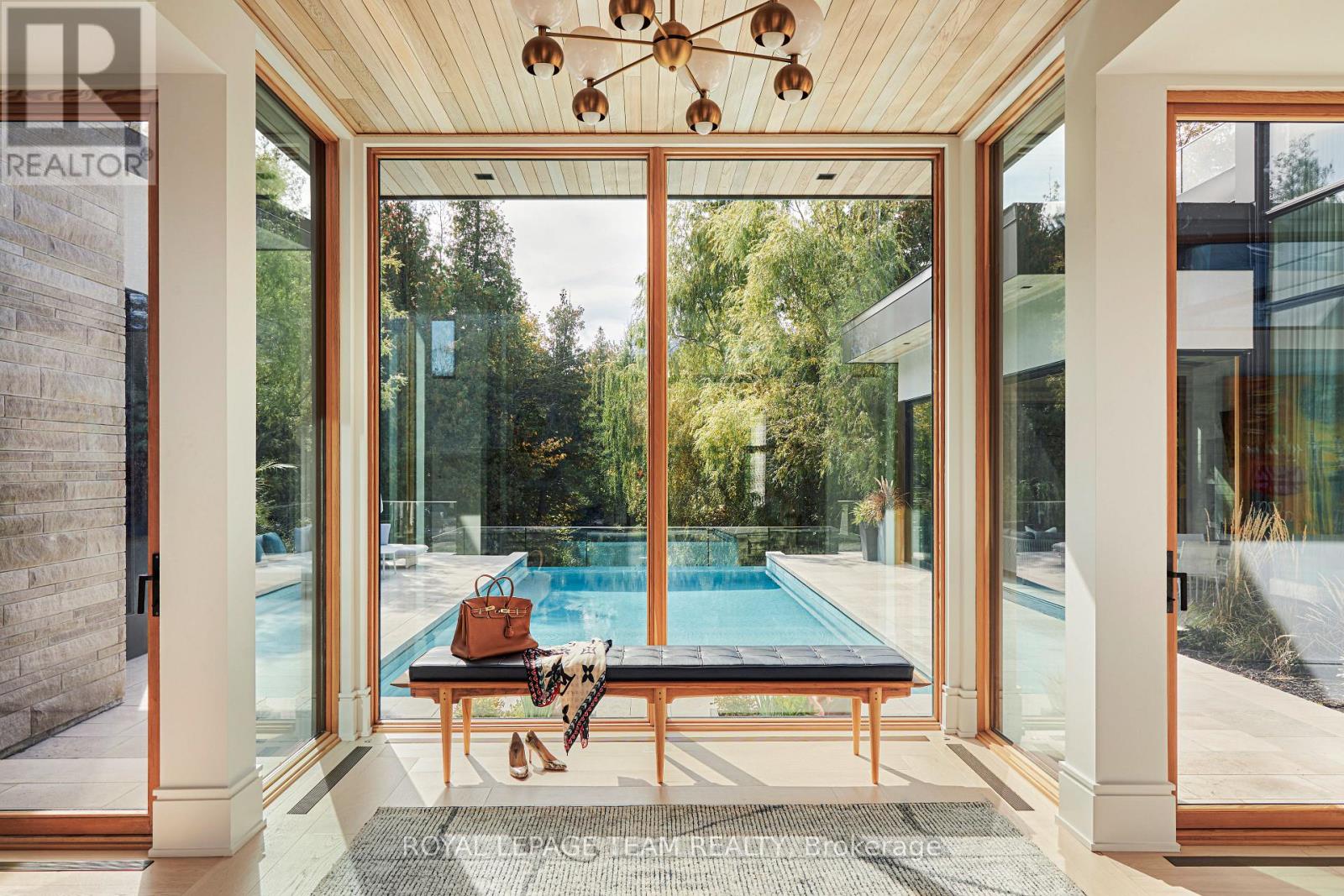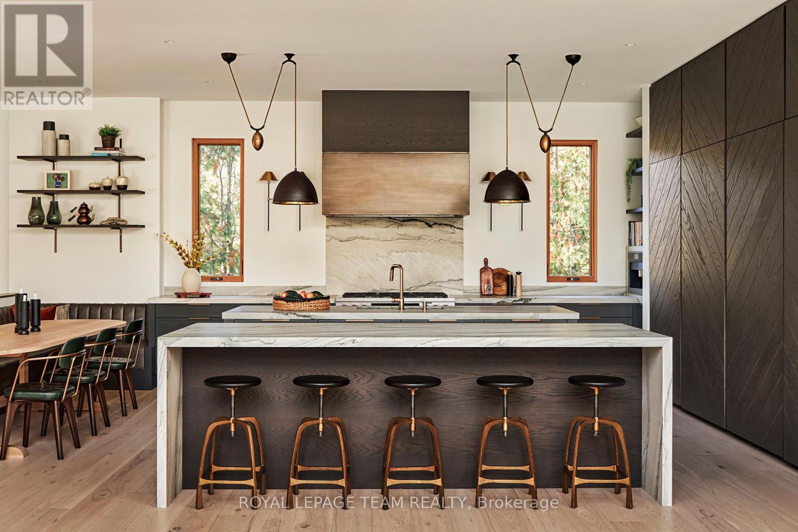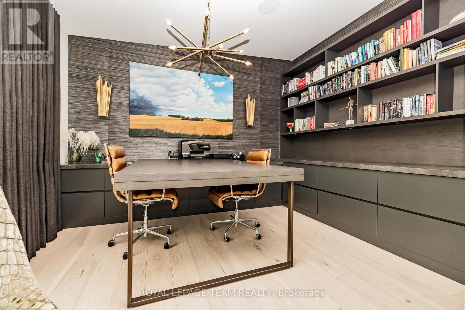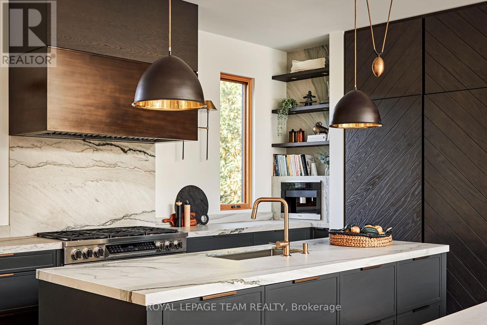 Discover a rare opportunity to own an architectural dream in the Kanata Rockeries. This ultra-private residence seamlessly blends elegance, innovative design, and the tranquility of nature in every space, offering a lifestyle of unparalleled luxury & a spa-like atmosphere right at home. Relax & unwind in the saltwater infnity pool overlooking the serene pond, soak in the hot tub, rejuvenate in the sauna & steam room, or cozy up by one of the 5 fre features. For ftness enthusiasts, the massive home gym is a haven, & nature lovers will appreciate the 6km nature hike accessible directly from your backyard. With over 9,000sf of meticulously curated living space, this home is designed for both intimate family living and grand-scale entertaining, indoors and out. The main foor is bathed in natural light, with panoramic views of the surrounding landscape. The primary retreat exudes elegance, wrapped in a warm, inviting ambiance & adorned with a lavish marble ensuite featuring heated foors, along with a dedicated makeup desk, a chic spacious walk-in closet, private laundry, & breathtaking foor-to-ceiling sliding glass wall to private deck & hot tub. The Chef's kitchen is a culinary masterpiece, featuring two 9ft islands & custom 15t banquet. Behind seamless custom cabinetry lies a hidden prep kitchen & pantry, featuring storage & secondary fridge & freezer. The dining room, complete with a bar & built-in wine fridges, fows effortlessly into the inviting living room. A heated 3-season room is designed for year-round enjoyment with sliding glass walls opening to the pool, a wood freplace & designer outdoor kitchen. The heated front walkway is a dream in the winter plus the 4 car heated garage offers direct access to the mudroom & separate entry to the basement-level sports room which is fully ventilated; perfect for active families. Nestled in the heart of the city, you can walk to shopping, dining, top-rated schools, rec facilities! (id:2469)