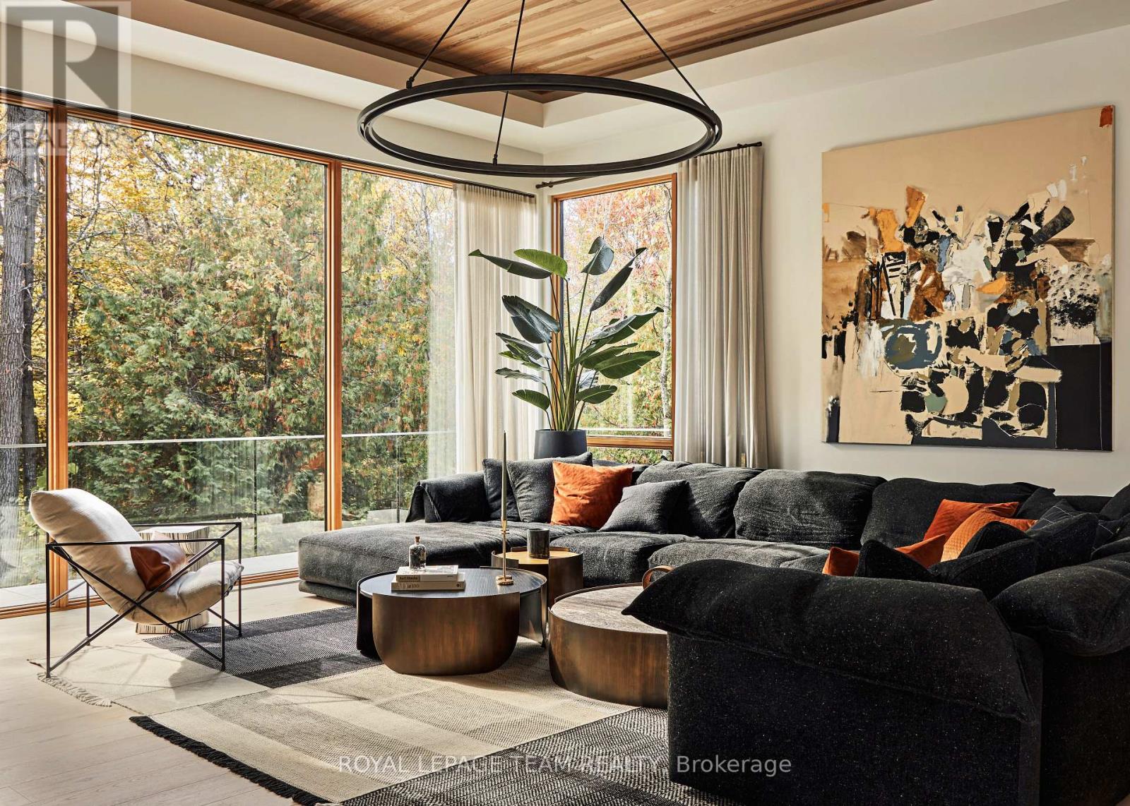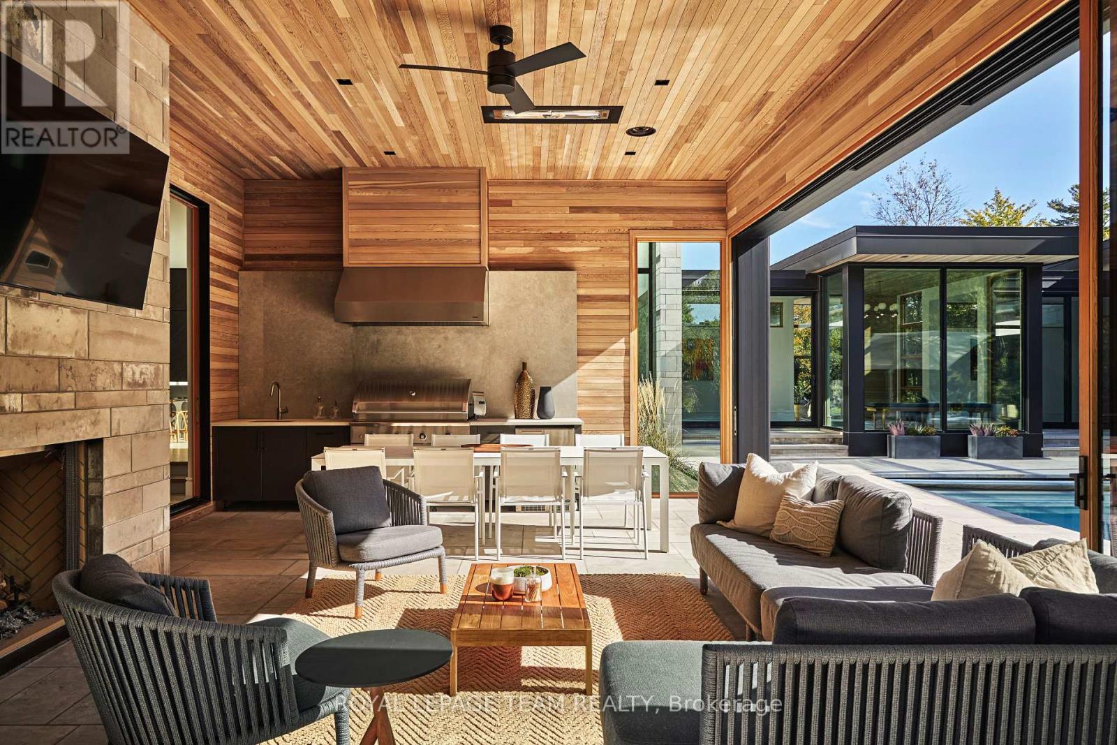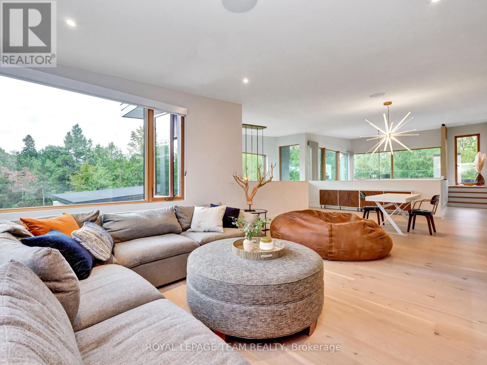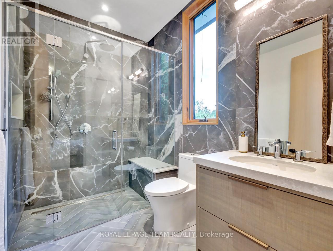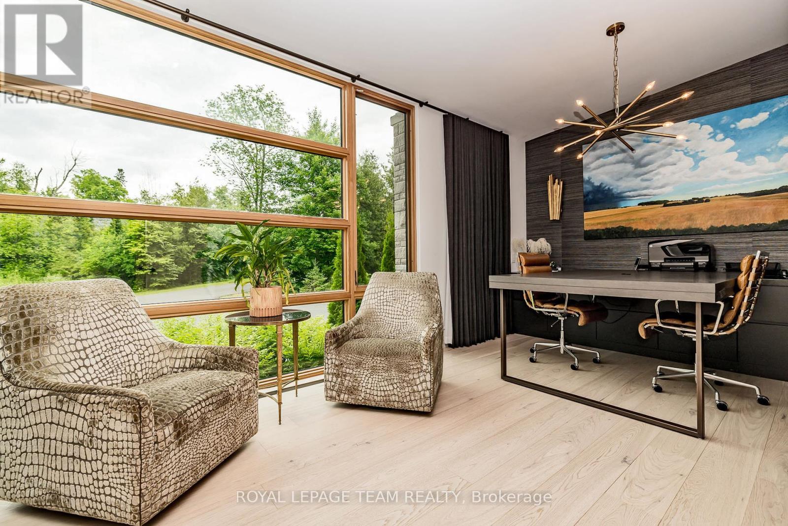 Discover a rare opportunity to own an architectural dream in the Kanata Rockeries. This ultra-private residence seamlessly blends elegance, innovative design, and the tranquility of nature in every space, offering a lifestyle of unparalleled luxury & a spa-like atmosphere right at home. Relax & unwind in the saltwater infnity pool overlooking the serene pond, soak in the hot tub, rejuvenate in the sauna & steam room, or cozy up by one of the 5 fre features. For ftness enthusiasts, the massive home gym is a haven, & nature lovers will appreciate the 6km nature hike accessible directly from your backyard. With over 9,000sf of meticulously curated living space, this home is designed for both intimate family living and grand-scale entertaining, indoors and out. The main foor is bathed in natural light, with panoramic views of the surrounding landscape. The primary retreat exudes elegance, wrapped in a warm, inviting ambiance & adorned with a lavish marble ensuite featuring heated foors, along with a dedicated makeup desk, a chic spacious walk-in closet, private laundry, & breathtaking foor-to-ceiling sliding glass wall to private deck & hot tub. The Chef's kitchen is a culinary masterpiece, featuring two 9ft islands & custom 15t banquet. Behind seamless custom cabinetry lies a hidden prep kitchen & pantry, featuring storage & secondary fridge & freezer. The dining room, complete with a bar & built-in wine fridges, fows effortlessly into the inviting living room. A heated 3-season room is designed for year-round enjoyment with sliding glass walls opening to the pool, a wood freplace & designer outdoor kitchen. The heated front walkway is a dream in the winter plus the 4 car heated garage offers direct access to the mudroom & separate entry to the basement-level sports room which is fully ventilated; perfect for active families. Nestled in the heart of the city, you can walk to shopping, dining, top-rated schools, rec facilities! (id:2469)