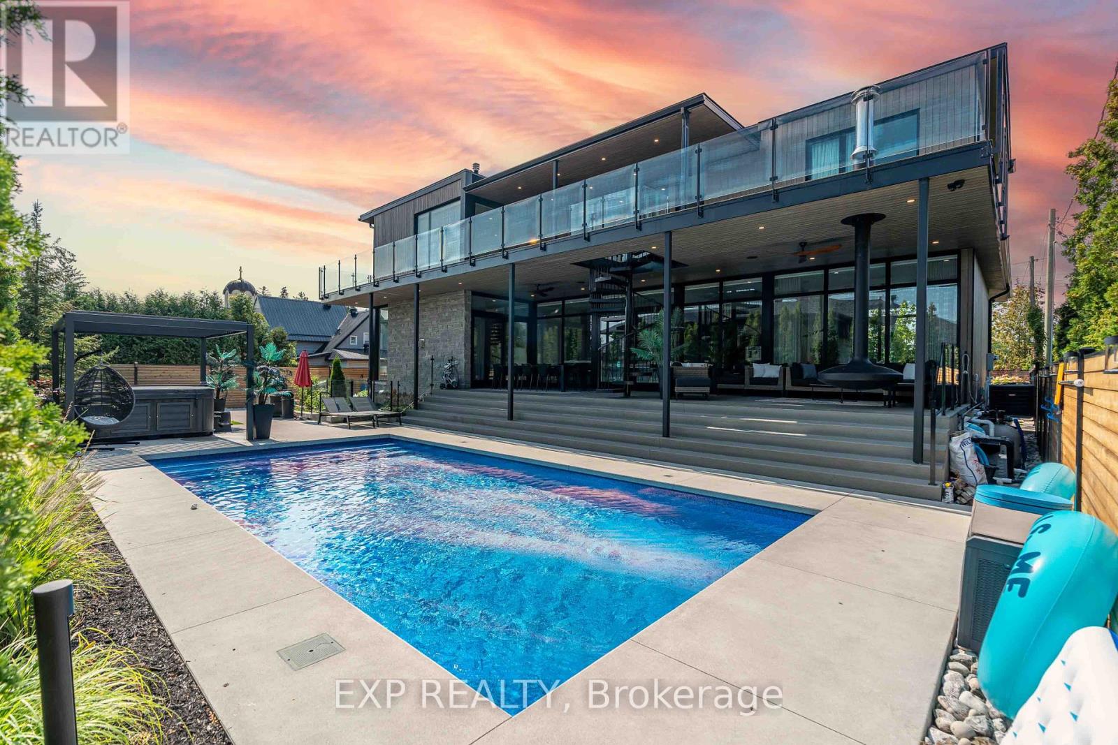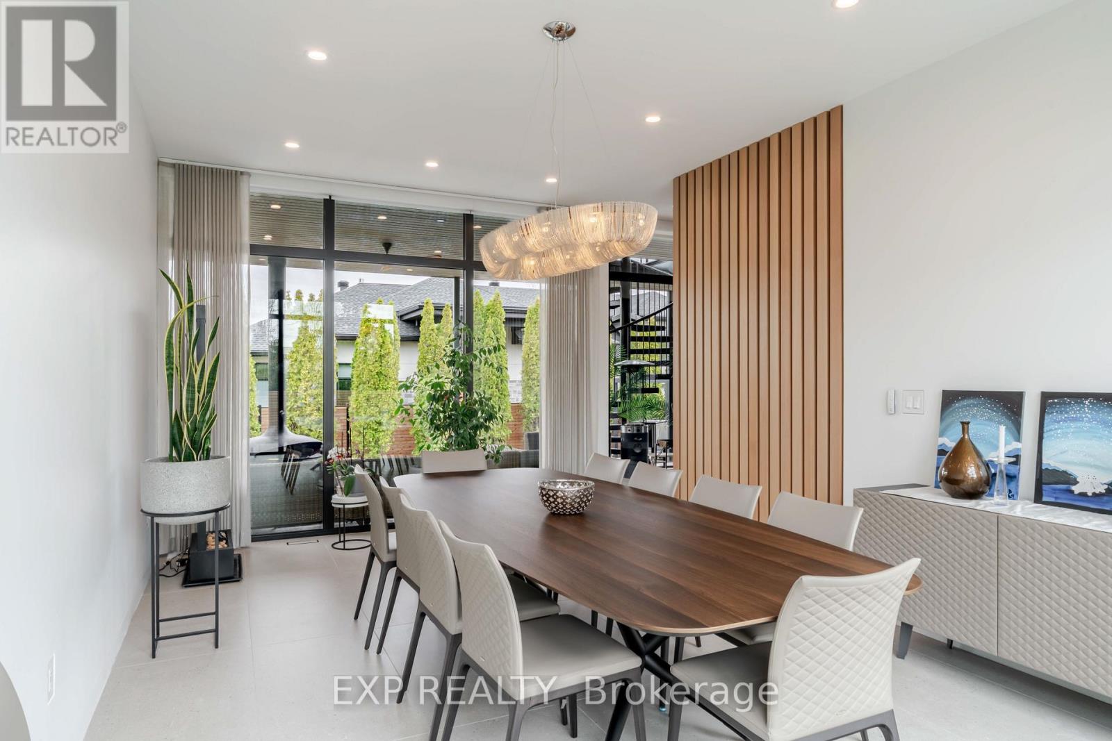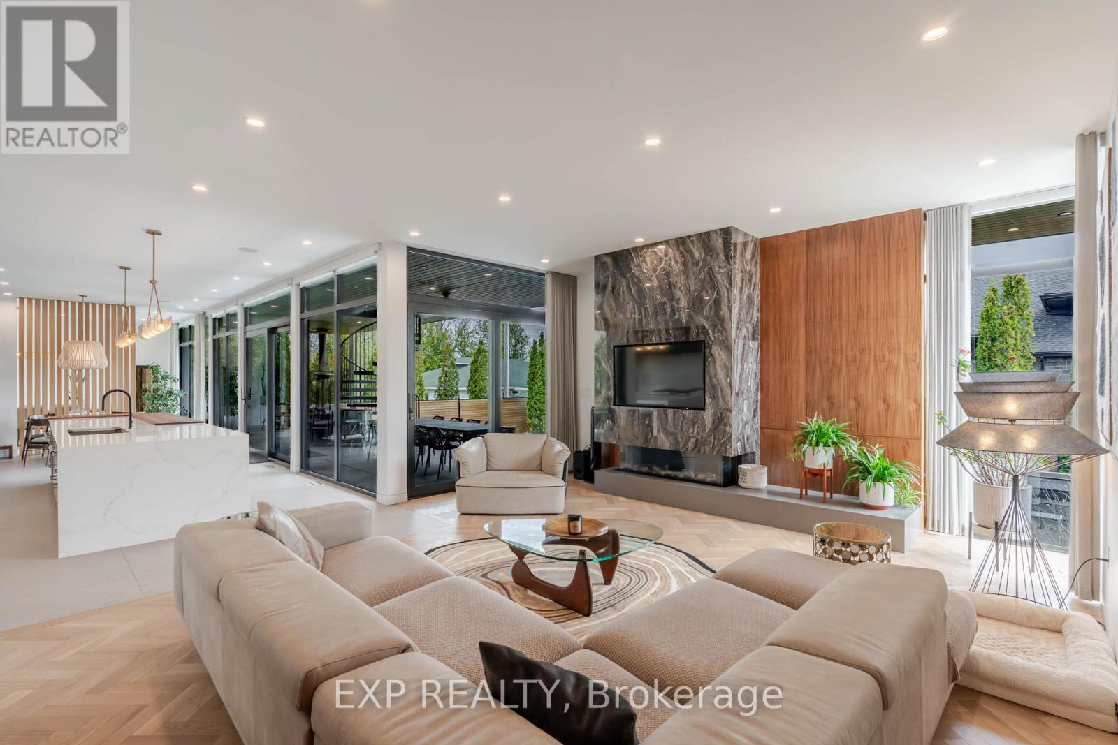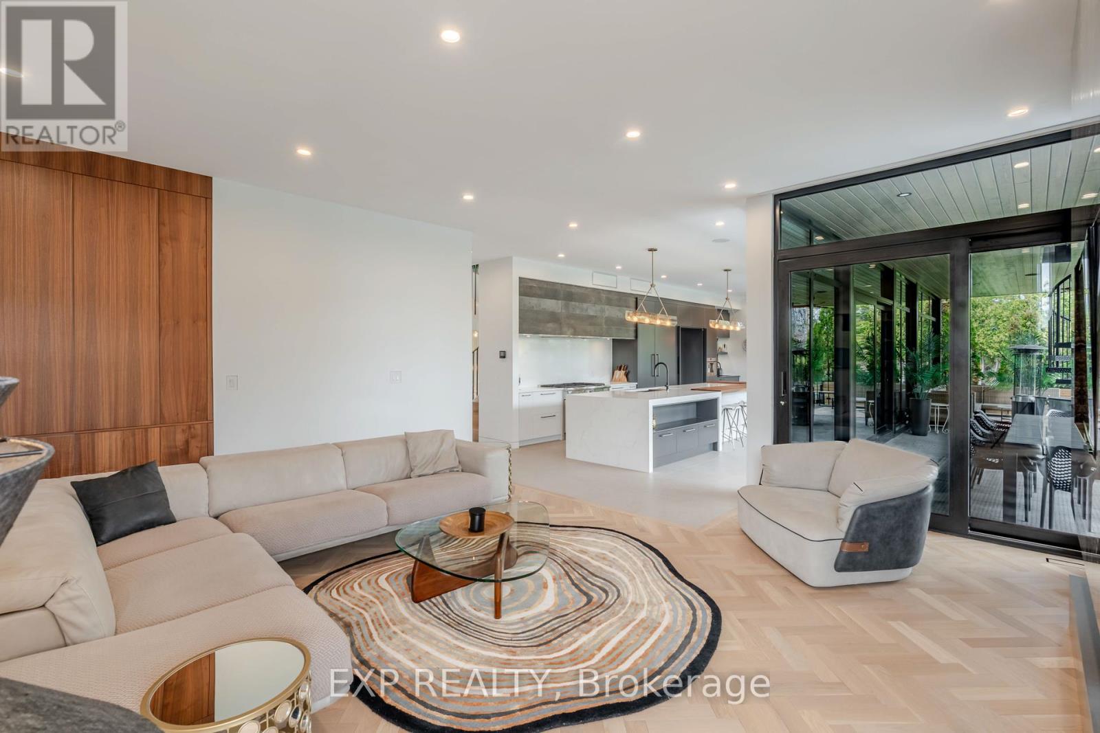 Experience unparalleled luxury & architectural masterpiece offering over 5,000 sq. ft. of meticulously finished space across three levels. This custom-built luxurious home is a rare blend of refined design, modern function, and exceptional craftsmanship & energy efficient, located just steps from the Rideau River. Featuring 5 bedrooms, 4 full bathrooms, a powder room, custom made circuital staircase, an Garaventa Elevator access to all 4 floors, & a 3-car garage with a hoist system, this estate offers space & convenience for upscale living. Inside, enjoy 10 ceilings, floor-to-ceiling European windows, hardwood and porcelain flooring, designer lighting (Bocci, Cattelan Italia, Arteriors), & four fireplaces including a stunning suspended outdoor Gyrofocus wood-burning centrepiece.The Downsview kitchen by Astro Design is a chefs dream with Thermador appliances, built-in coffee bar, and a fully equipped walk-in pantry that can be concealed. The luxurious primary suite features a spa-like ensuite, walk-in closet, gas fireplace, and drop-down ceiling TV.The fully finished basement includes radiant in-floor heating, a bedroom, office, gym, rec-space, wine room, and concrete cold storage cantina. Outside, the private landscaped yard includes a heated saltwater pool, 8-person hot tub with a motorized pergola, three covered patios, custom metal exterior staircase, and water views from the second-floor terrace.Additional features: Generac whole-home power system, custom fencing and gate with intercom, 6-camera app-controlled security, permeable Pure Pave driveway, irrigation system, and two full laundry rooms.This rare luxury home must be seen to be appreciated. Perfectly suited for multigenerational living, with smart accessibility features for effortless comfort. (id:2469)