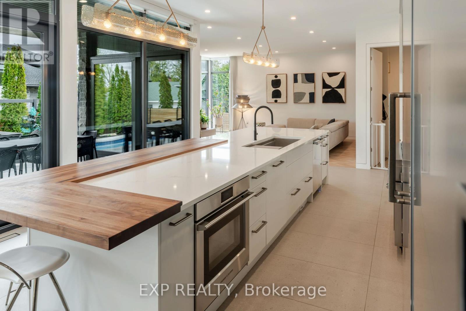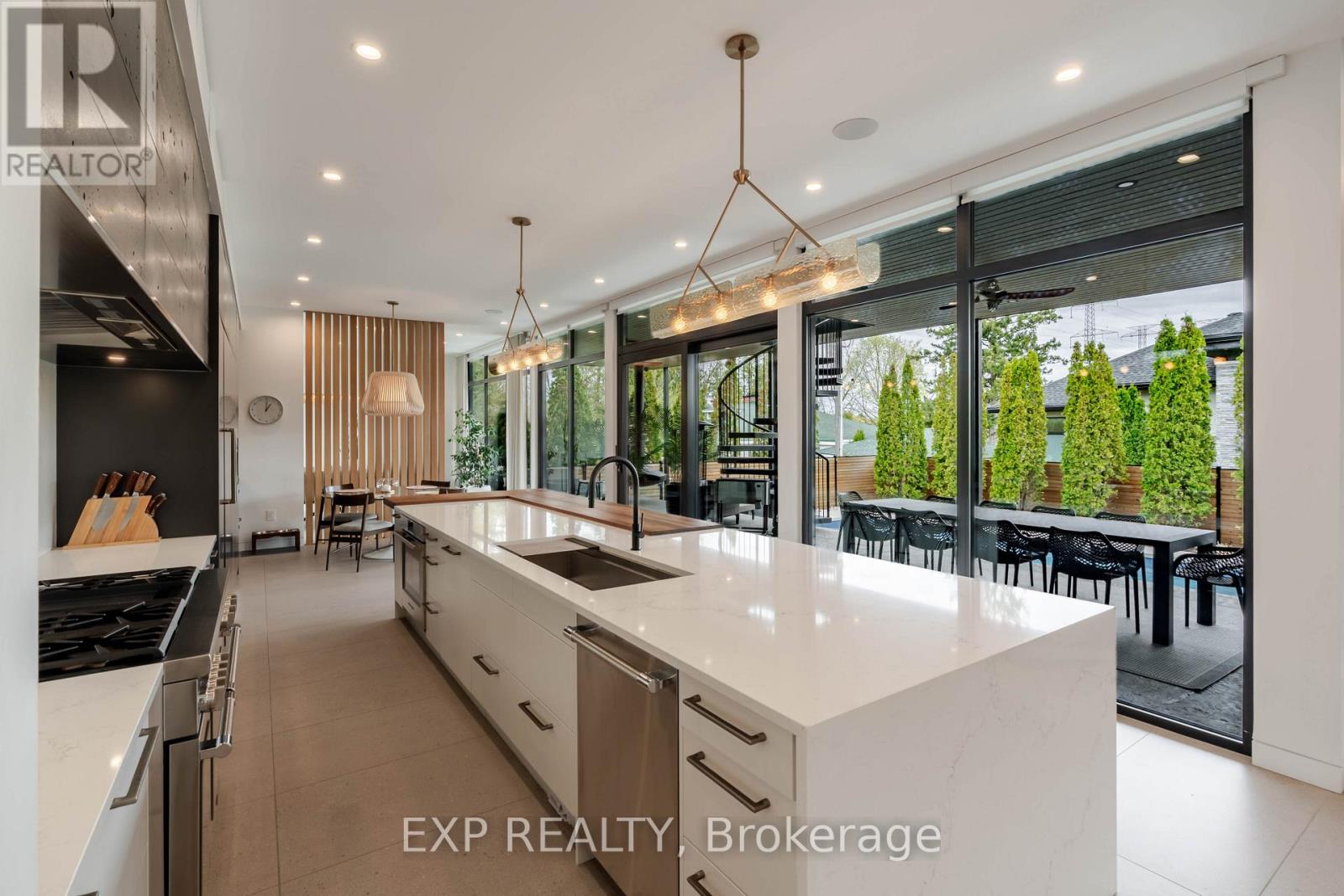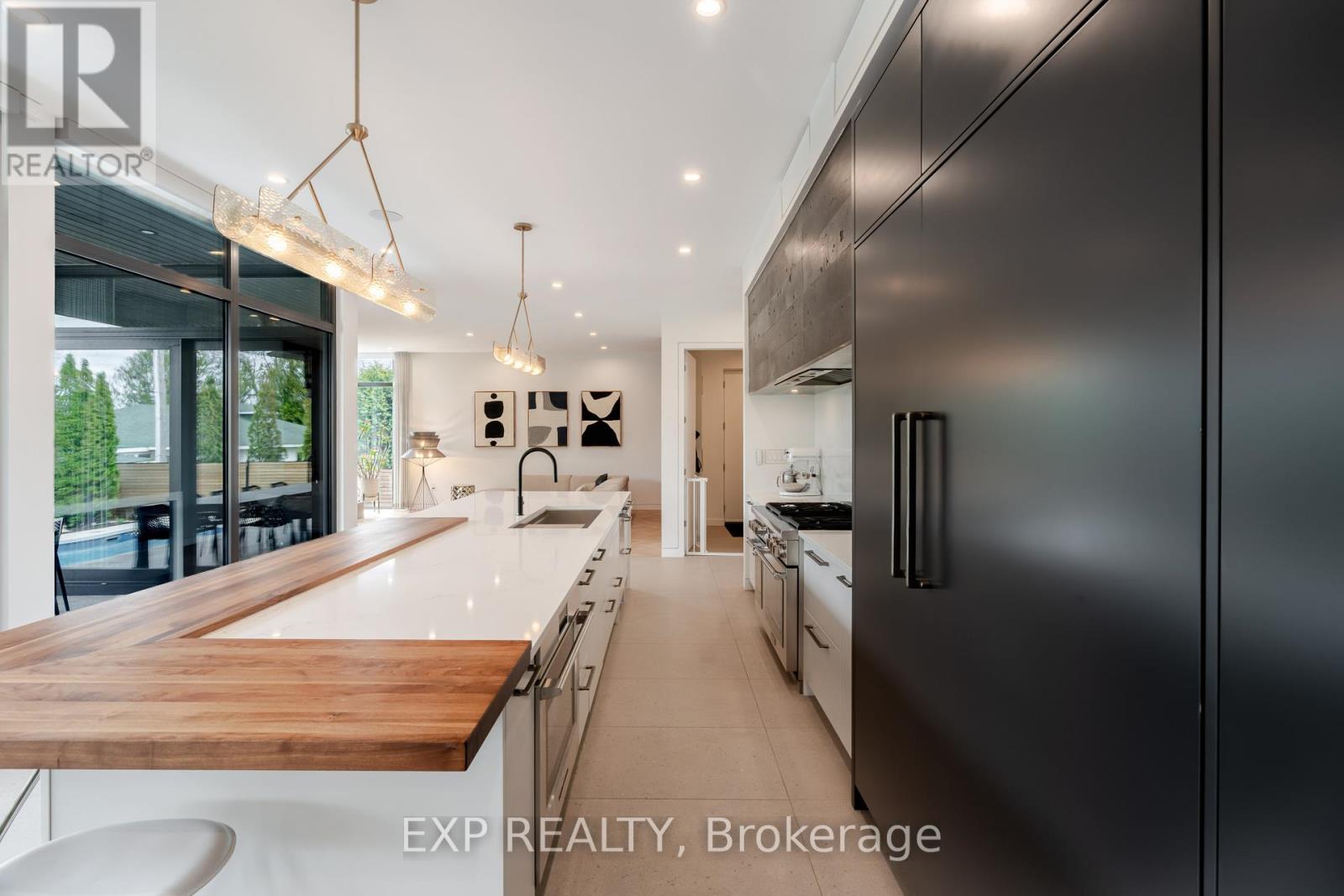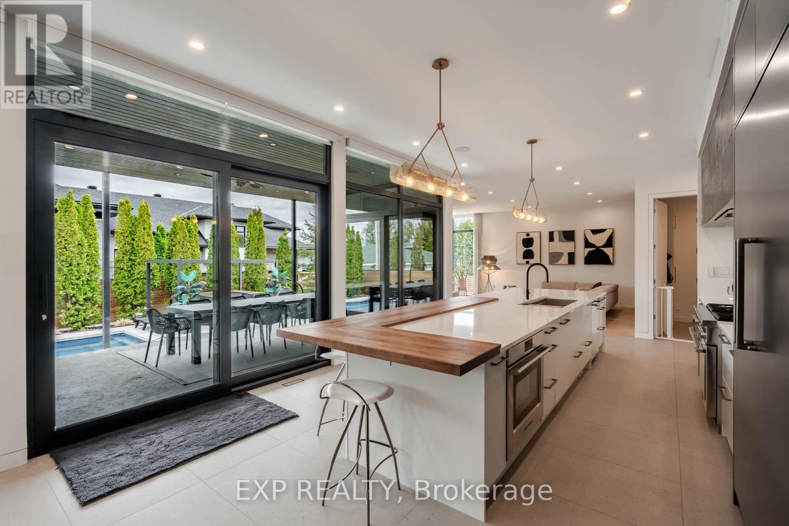 Experience unparalleled luxury & architectural masterpiece offering over 5,000 sq. ft. of meticulously finished space across three levels. This custom-built luxurious home is a rare blend of refined design, modern function, and exceptional craftsmanship & energy efficient, located just steps from the Rideau River. Featuring 5 bedrooms, 4 full bathrooms, a powder room, custom made circuital staircase, an Garaventa Elevator access to all 4 floors, & a 3-car garage with a hoist system, this estate offers space & convenience for upscale living. Inside, enjoy 10 ceilings, floor-to-ceiling European windows, hardwood and porcelain flooring, designer lighting (Bocci, Cattelan Italia, Arteriors), & four fireplaces including a stunning suspended outdoor Gyrofocus wood-burning centrepiece.The Downsview kitchen by Astro Design is a chefs dream with Thermador appliances, built-in coffee bar, and a fully equipped walk-in pantry that can be concealed. The luxurious primary suite features a spa-like ensuite, walk-in closet, gas fireplace, and drop-down ceiling TV.The fully finished basement includes radiant in-floor heating, a bedroom, office, gym, rec-space, wine room, and concrete cold storage cantina. Outside, the private landscaped yard includes a heated saltwater pool, 8-person hot tub with a motorized pergola, three covered patios, custom metal exterior staircase, and water views from the second-floor terrace.Additional features: Generac whole-home power system, custom fencing and gate with intercom, 6-camera app-controlled security, permeable Pure Pave driveway, irrigation system, and two full laundry rooms.This rare luxury home must be seen to be appreciated. Perfectly suited for multigenerational living, with smart accessibility features for effortless comfort. (id:2469)