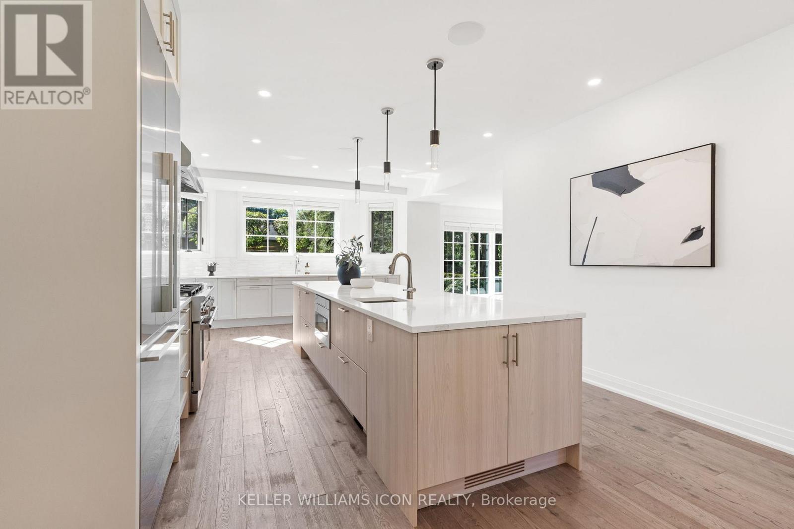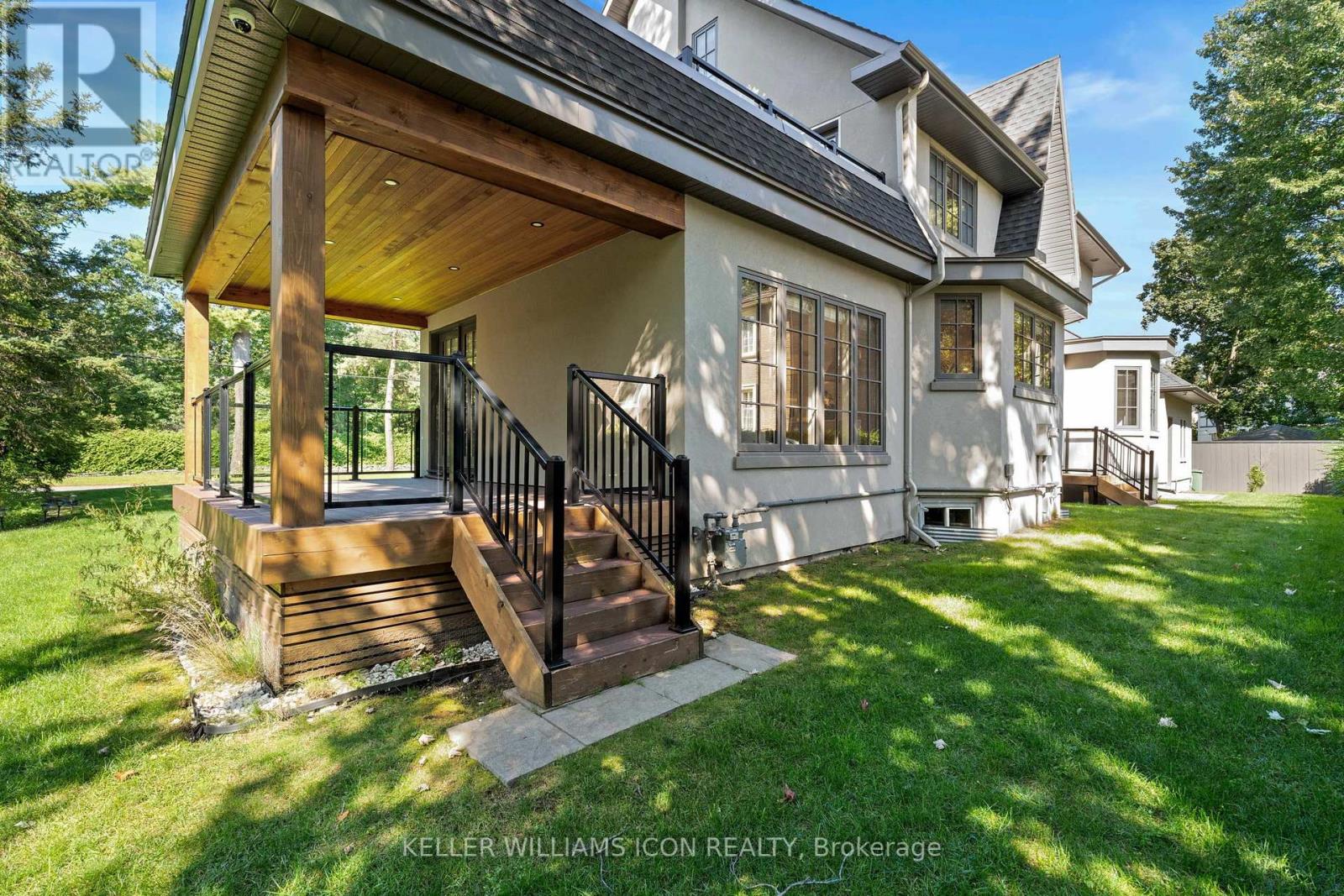 Former French State ResidenceMeticulously rebuilt in 2019 by luxury builder Gemstone in collaboration with architect Barry J. Hobin. Every detail was carefully considered, with all-new materials and enhanced insulation behind the walls. Features include custom vintage-style windows, integrated central speakers, heated floors, smart-home wiring, premium white oak flooring, marble finishes, and exquisite custom millwork.The chefs kitchen boasts commercial-grade appliances, an oversized island, and generous workspace. A separate living area with balcony enhances functionality and privacy. Upstairs, two ensuite bedrooms offer comfort and style. The primary suite features a spa-inspired bath with heated floors and integrated speakers. A dream-sized laundry room adds everyday convenience.The third floor offers two spacious bedrooms and a full bath, supported by a dedicated furnace for heating and cooling. The lower level provides a cozy family room and ample storage.Outdoors, enjoy a two-level patio designed for entertaining. The home sits on a flat corner lot with a deep front yard, an extended driveway, and future potential for a garden or pool. A professional landscape design is already prepared for the next owner to bring to life.This residence is a rare opportunity where heritage meets luxury. (id:2469)