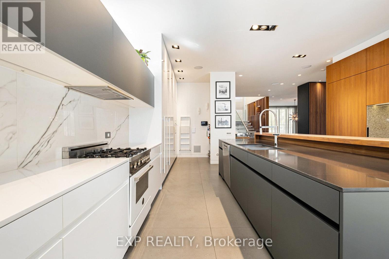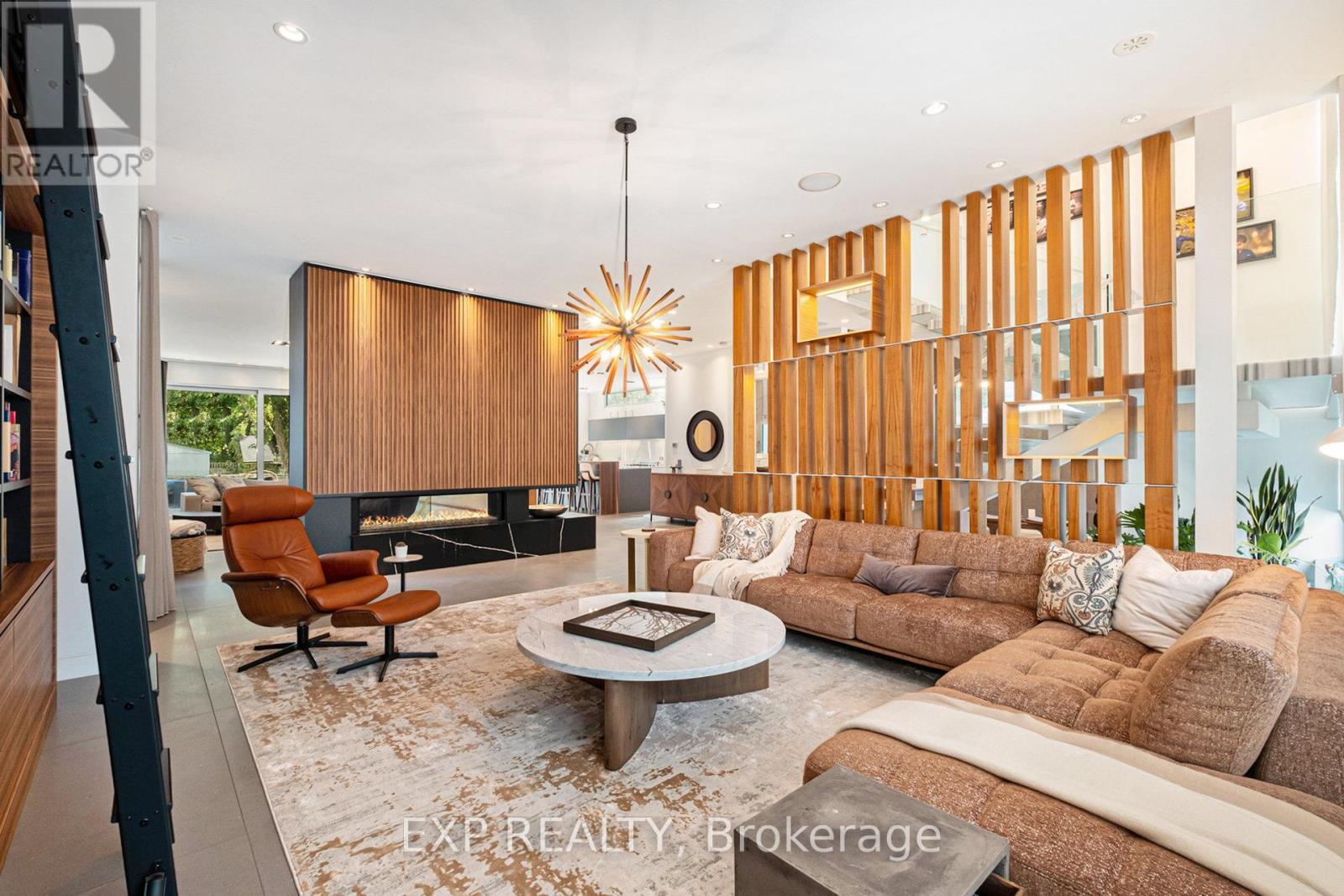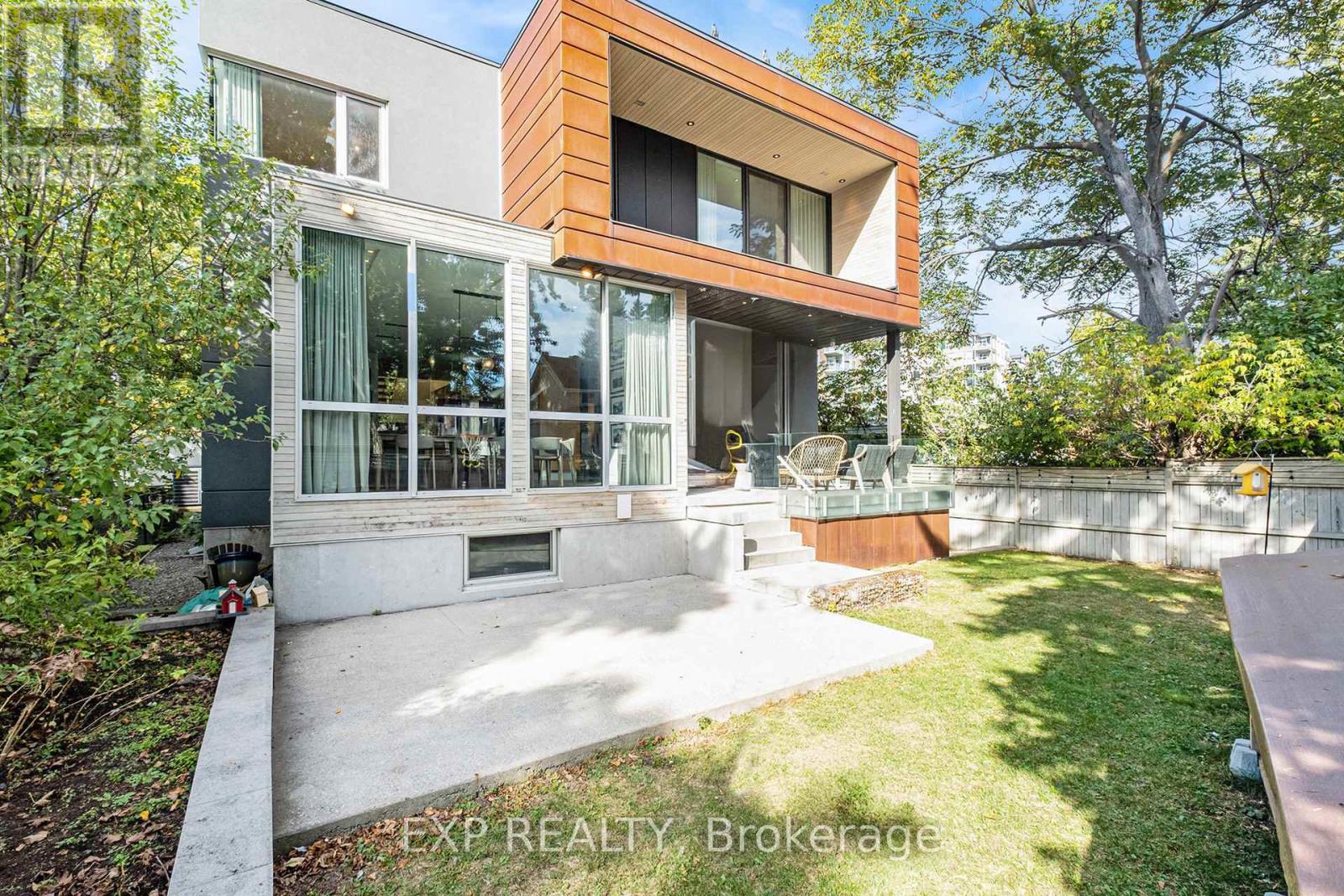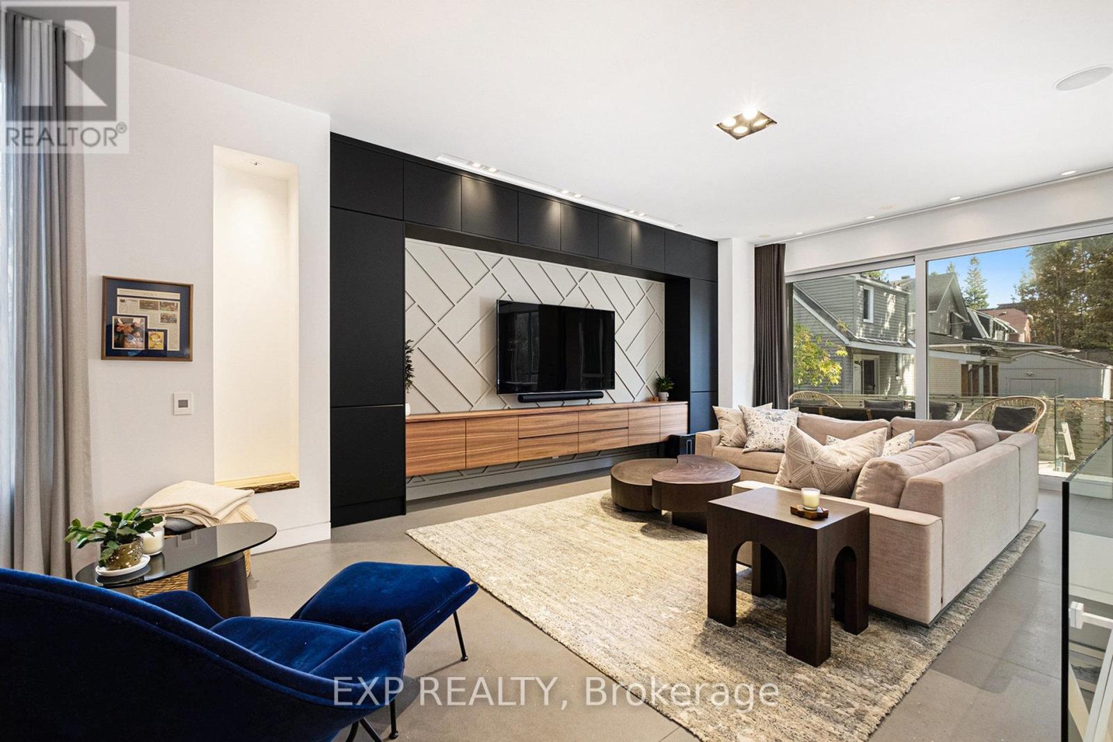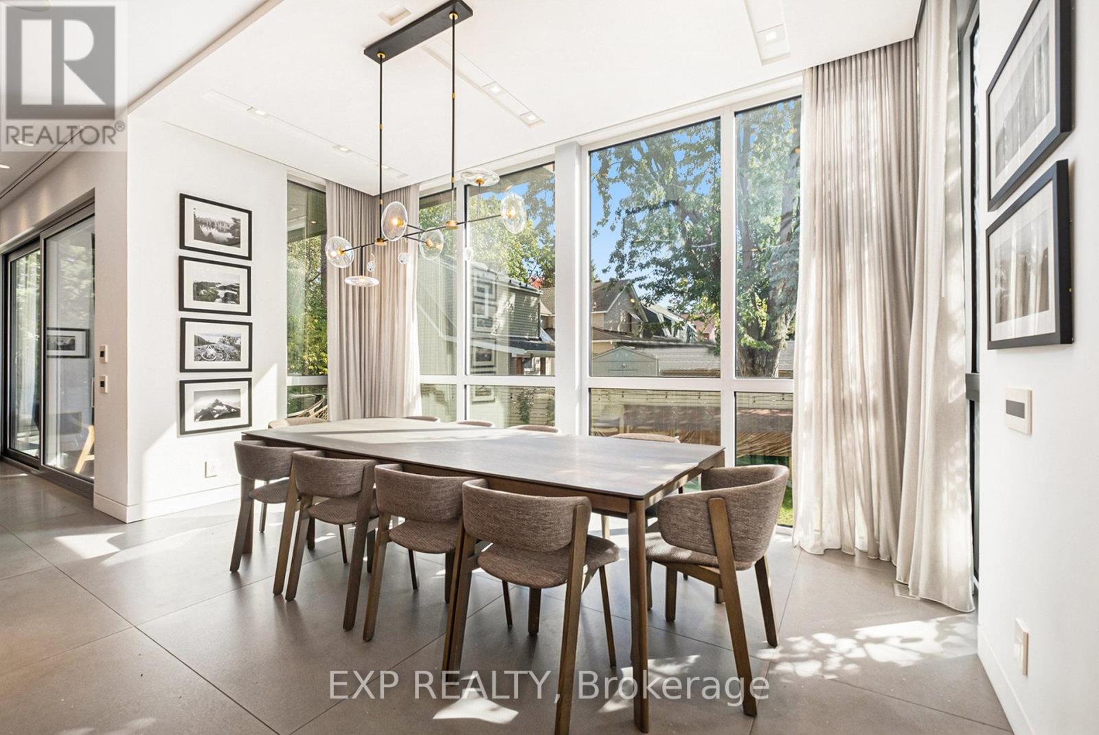 A Modern Architectural Statement in the Heart of Westboro, Reinvented Inside and Out by Style Haus Interiors & +VG Architects. The Main Level Offers 10' Ceilings & Floor to Ceiling Glass and Stunning 4'x4' Porcelain Tile. A Double Sided Linear Fireplace Anchors a Sophisticated Living & Dining Sequence beside a Custom Library Wall. The Chef's Kitchen is Newly Refreshed with Custom Cabinetry, an Expanded Island w/Breakfast Bar, Integrated Cabinet Fridges & Freezer, Sleek Push Button Upper Storage, and an Italian Coffee Bar Wrapped in Granite. A Designer Powder Room & Carefully Curated Millwork Complete this Level with Style. Open Riser Stairs with Imported Marble lead to a Serene Primary Retreat featuring Custom Built-Ins, and the Spa Caliber Ensuite includes a Full Glass Enclosure, Roberto Cavalli Tile, a Curbless Shower & Extended Double Vanity. Secondary Bedrooms are Generously Scaled. The Children's Bath Showcases a Playful Banksy Tile. An Upper Loft & Den w/Balcony, add Flexible Living Space. The Lower Level extends the experience with a Media and Games Area, Full Bath, a Well Organized Laundry RM with Folding Table & Built-Ins, and a Mudroom Reimagined with Custom Millwork Cubbies. Professionally Finished Oversized Garage for Clean Storage and Everyday Practicality. A Heated Driveway & Heated Front Walkway and Steps, Served by a New Boiler in 2024, provide Effortless Four Season Living. Outdoors, Walls of Glass open to a Landscaped Setting with Covered Transitions from Inside to Out, Perfect for Quiet Morning Coffee or Evening Gatherings. A whole home Generac Generator adds Peace of Mind. This Location is Exceptional. The Byron Linear Park Farmer's Market runs every Saturday from May to October and is Literally at your Doorstep! Westboro Beach is an Easy Bike or Stroll. The LRT Station is a Comfortable Five to Ten Minute Walk. Top Ranked Elementary and Secondary Schools are in the Catchment. Cafés, Restaurants, Grocers, and Boutique Shops are Just Steps Away! (id:2469)