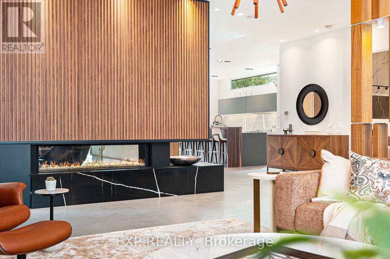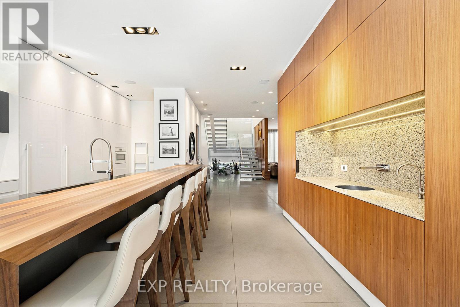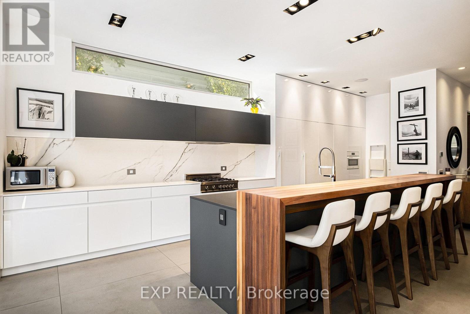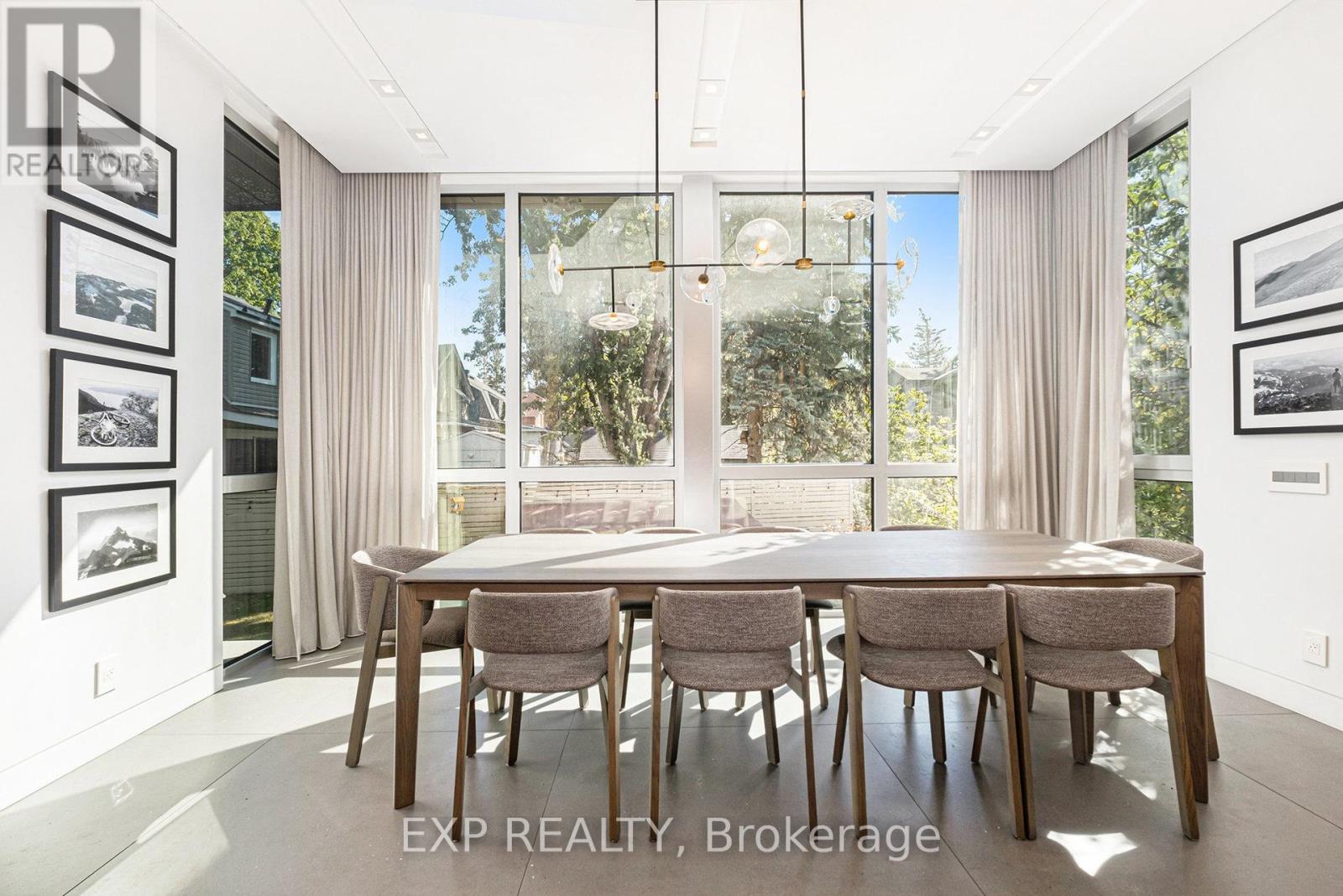 A Modern Architectural Statement in the Heart of Westboro, Reinvented Inside and Out by Style Haus Interiors & +VG Architects. The Main Level Offers 10' Ceilings & Floor to Ceiling Glass and Stunning 4'x4' Porcelain Tile. A Double Sided Linear Fireplace Anchors a Sophisticated Living & Dining Sequence beside a Custom Library Wall. The Chef's Kitchen is Newly Refreshed with Custom Cabinetry, an Expanded Island w/Breakfast Bar, Integrated Cabinet Fridges & Freezer, Sleek Push Button Upper Storage, and an Italian Coffee Bar Wrapped in Granite. A Designer Powder Room & Carefully Curated Millwork Complete this Level with Style. Open Riser Stairs with Imported Marble lead to a Serene Primary Retreat featuring Custom Built-Ins, and the Spa Caliber Ensuite includes a Full Glass Enclosure, Roberto Cavalli Tile, a Curbless Shower & Extended Double Vanity. Secondary Bedrooms are Generously Scaled. The Children's Bath Showcases a Playful Banksy Tile. An Upper Loft & Den w/Balcony, add Flexible Living Space. The Lower Level extends the experience with a Media and Games Area, Full Bath, a Well Organized Laundry RM with Folding Table & Built-Ins, and a Mudroom Reimagined with Custom Millwork Cubbies. Professionally Finished Oversized Garage for Clean Storage and Everyday Practicality. A Heated Driveway & Heated Front Walkway and Steps, Served by a New Boiler in 2024, provide Effortless Four Season Living. Outdoors, Walls of Glass open to a Landscaped Setting with Covered Transitions from Inside to Out, Perfect for Quiet Morning Coffee or Evening Gatherings. A whole home Generac Generator adds Peace of Mind. This Location is Exceptional. The Byron Linear Park Farmer's Market runs every Saturday from May to October and is Literally at your Doorstep! Westboro Beach is an Easy Bike or Stroll. The LRT Station is a Comfortable Five to Ten Minute Walk. Top Ranked Elementary and Secondary Schools are in the Catchment. Cafés, Restaurants, Grocers, and Boutique Shops are Just Steps Away! (id:2469)