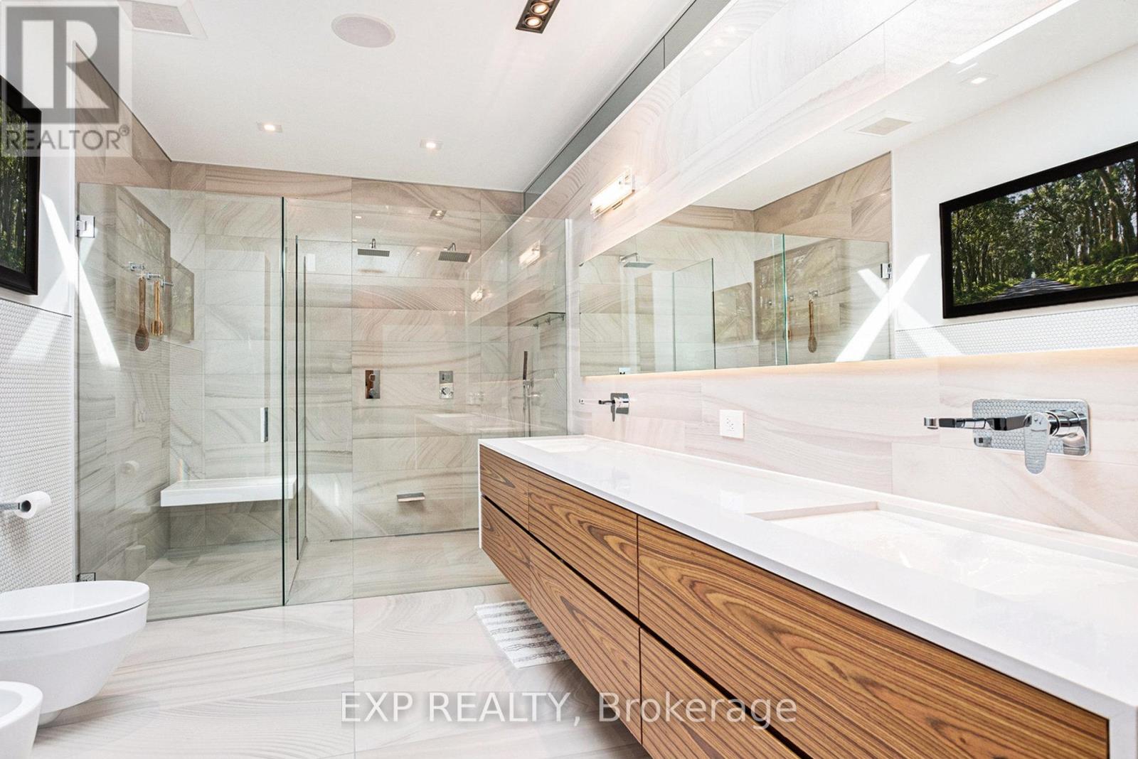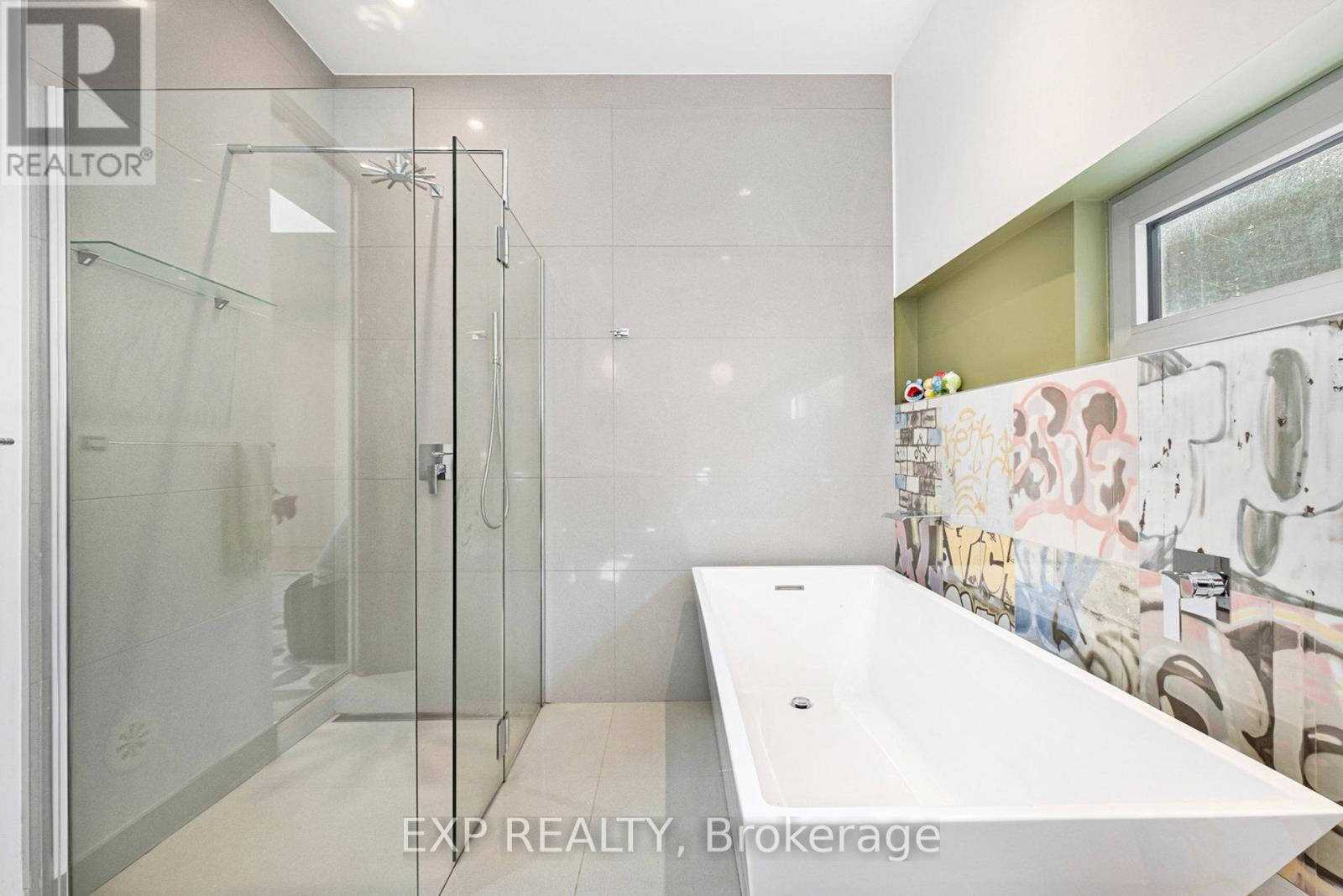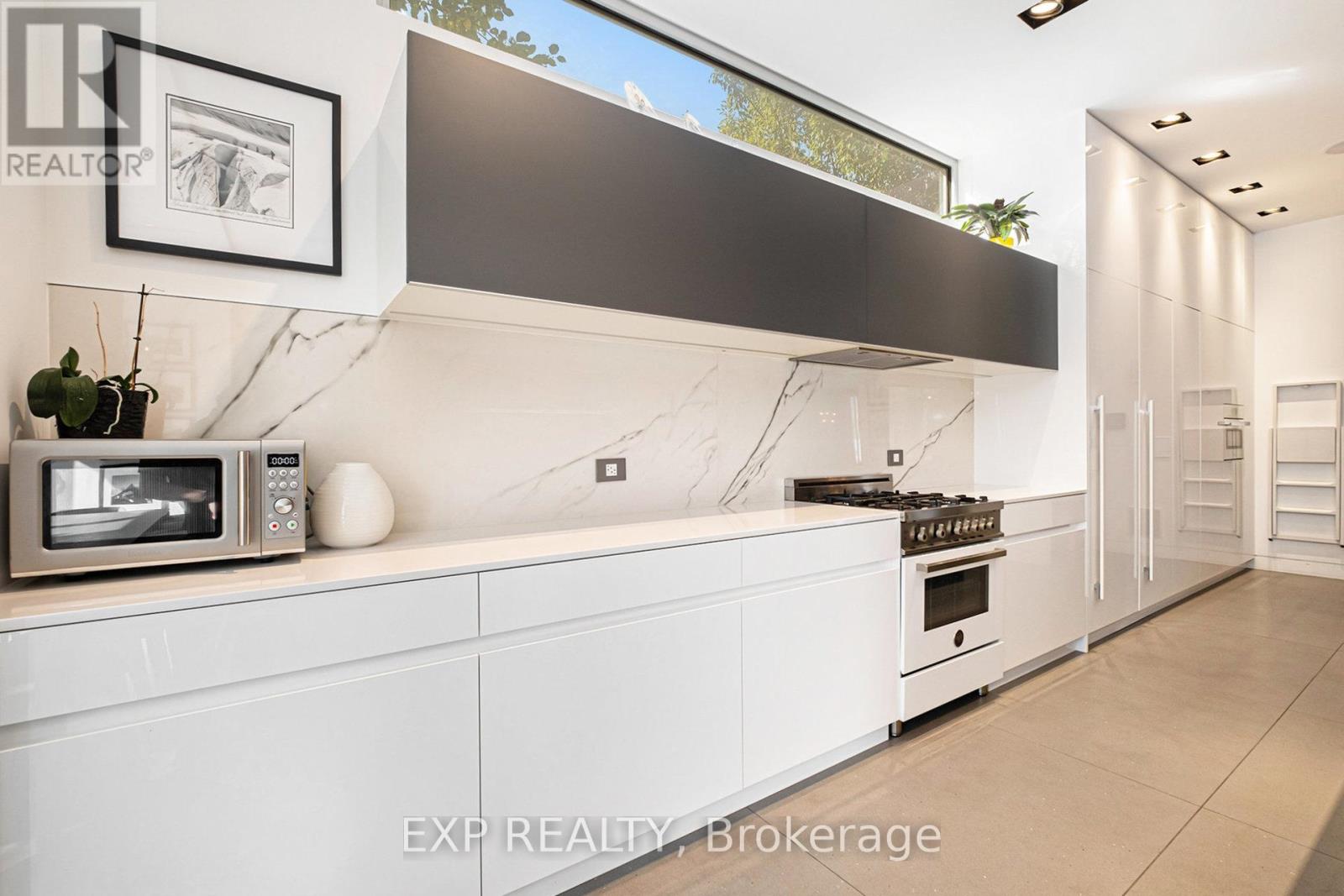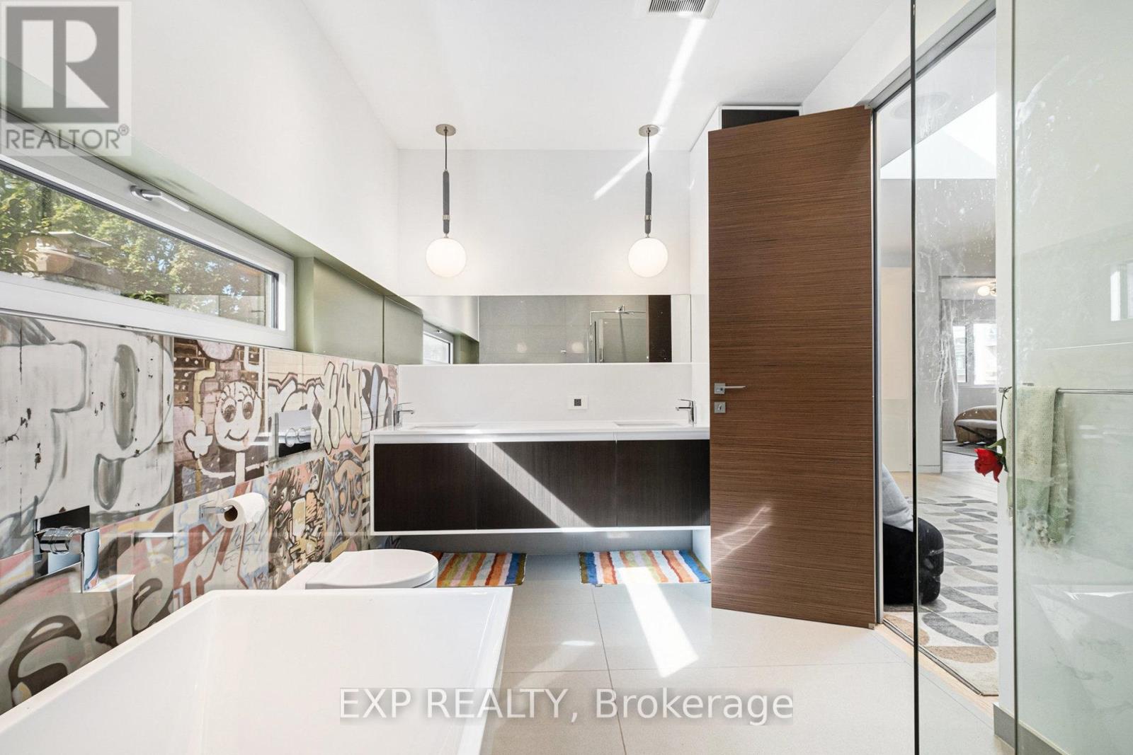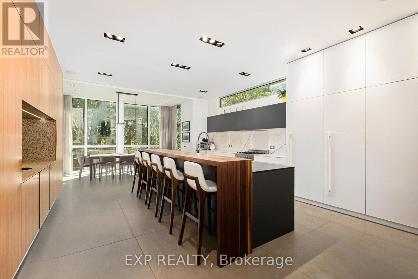 A Modern Architectural Statement in the Heart of Westboro, Reinvented Inside and Out by Style Haus Interiors & +VG Architects. The Main Level Offers 10' Ceilings & Floor to Ceiling Glass and Stunning 4'x4' Porcelain Tile. A Double Sided Linear Fireplace Anchors a Sophisticated Living & Dining Sequence beside a Custom Library Wall. The Chef's Kitchen is Newly Refreshed with Custom Cabinetry, an Expanded Island w/Breakfast Bar, Integrated Cabinet Fridges & Freezer, Sleek Push Button Upper Storage, and an Italian Coffee Bar Wrapped in Granite. A Designer Powder Room & Carefully Curated Millwork Complete this Level with Style. Open Riser Stairs with Imported Marble lead to a Serene Primary Retreat featuring Custom Built-Ins, and the Spa Caliber Ensuite includes a Full Glass Enclosure, Roberto Cavalli Tile, a Curbless Shower & Extended Double Vanity. Secondary Bedrooms are Generously Scaled. The Children's Bath Showcases a Playful Banksy Tile. An Upper Loft & Den w/Balcony, add Flexible Living Space. The Lower Level extends the experience with a Media and Games Area, Full Bath, a Well Organized Laundry RM with Folding Table & Built-Ins, and a Mudroom Reimagined with Custom Millwork Cubbies. Professionally Finished Oversized Garage for Clean Storage and Everyday Practicality. A Heated Driveway & Heated Front Walkway and Steps, Served by a New Boiler in 2024, provide Effortless Four Season Living. Outdoors, Walls of Glass open to a Landscaped Setting with Covered Transitions from Inside to Out, Perfect for Quiet Morning Coffee or Evening Gatherings. A whole home Generac Generator adds Peace of Mind. This Location is Exceptional. The Byron Linear Park Farmer's Market runs every Saturday from May to October and is Literally at your Doorstep! Westboro Beach is an Easy Bike or Stroll. The LRT Station is a Comfortable Five to Ten Minute Walk. Top Ranked Elementary and Secondary Schools are in the Catchment. Cafés, Restaurants, Grocers, and Boutique Shops are Just Steps Away! (id:2469)